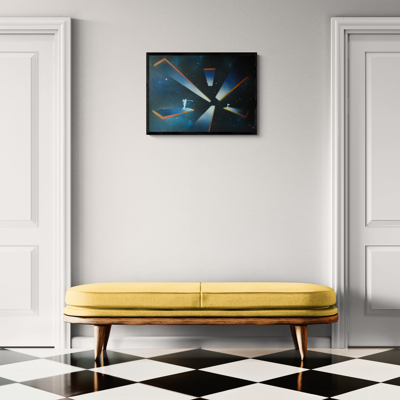 Akrilfestmény HDF (faalap) lapon, elegáns, vékony alumínium kerettel, amelyet a keretező mester készített. A mű letisztult, modern megjelenést kap, tökéletes kortárs enteriőrökbe. 70 x 50 cm