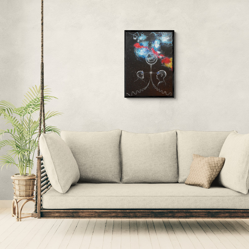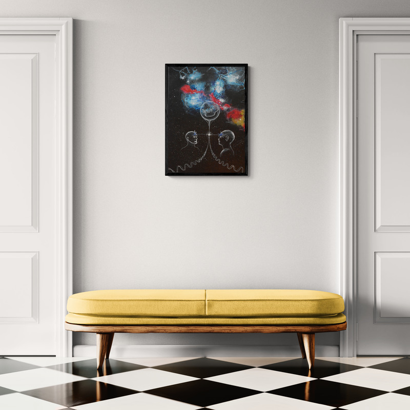 Akrilfestmény HDF (faalap) lapon, elegáns, vékony alumínium kerettel, amelyet a keretező mester készített. A mű letisztult, modern megjelenést kap, tökéletes kortárs enteriőrökbe. 50 x 70 cm