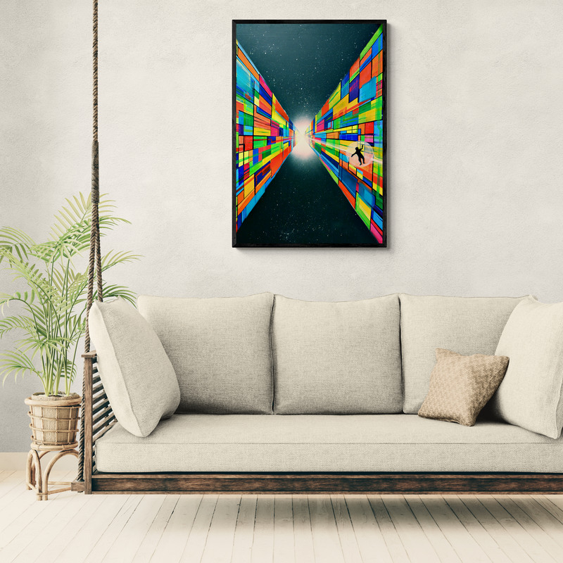 Akrilfestmény HDF (faalap) lapon, elegáns, vékony alumínium kerettel, amelyet a keretező mester készített. A mű letisztult, modern megjelenést kap, tökéletes kortárs enteriőrökbe. 70 x 100 cm