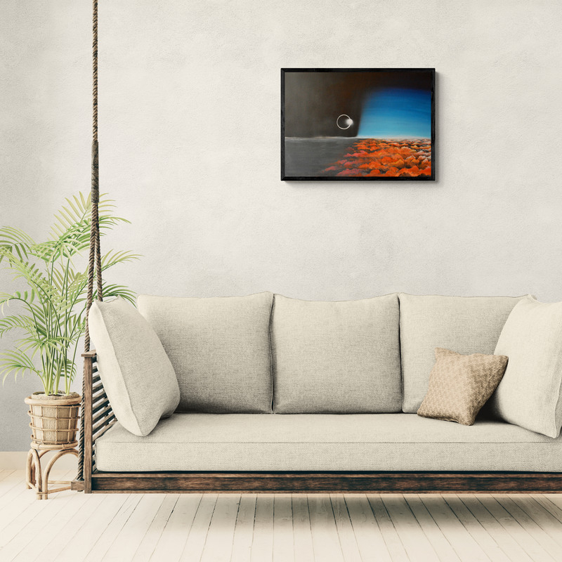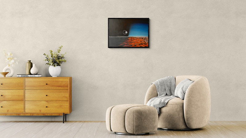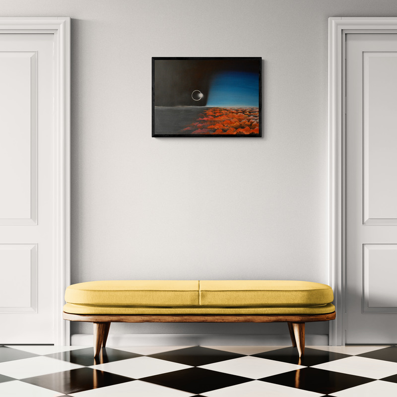 Akrilfestmény HDF (faalap) lapon, elegáns, vékony alumínium kerettel, amelyet a keretező mester készített. A mű letisztult, modern megjelenést kap, tökéletes kortárs enteriőrökbe. 70 x 50 cm