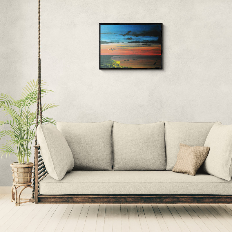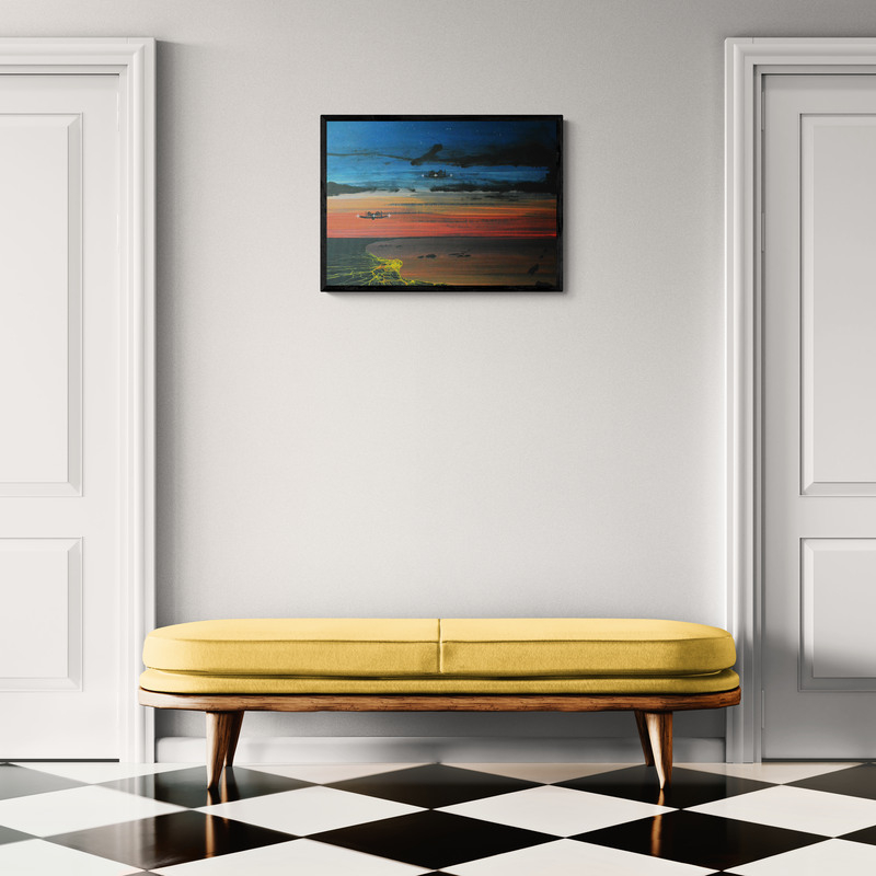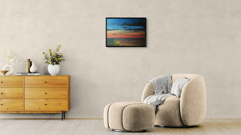 Akrilfestmény HDF (faalap) lapon, elegáns, vékony alumínium kerettel, amelyet a keretező mester készített. A mű letisztult, modern megjelenést kap, tökéletes kortárs enteriőrökbe. 70 x 50 cm