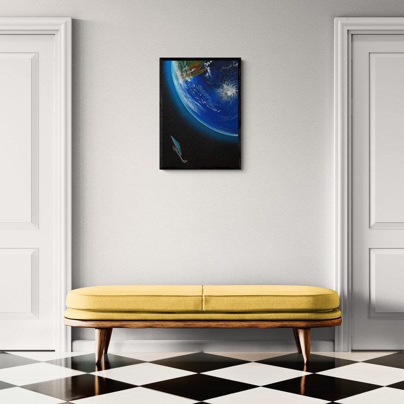 Akrilfestmény HDF (faalap) lapon, elegáns, vékony alumínium kerettel, amelyet a keretező mester készített. A mű letisztult, modern megjelenést kap, tökéletes kortárs enteriőrökbe. 50 x 70 cm