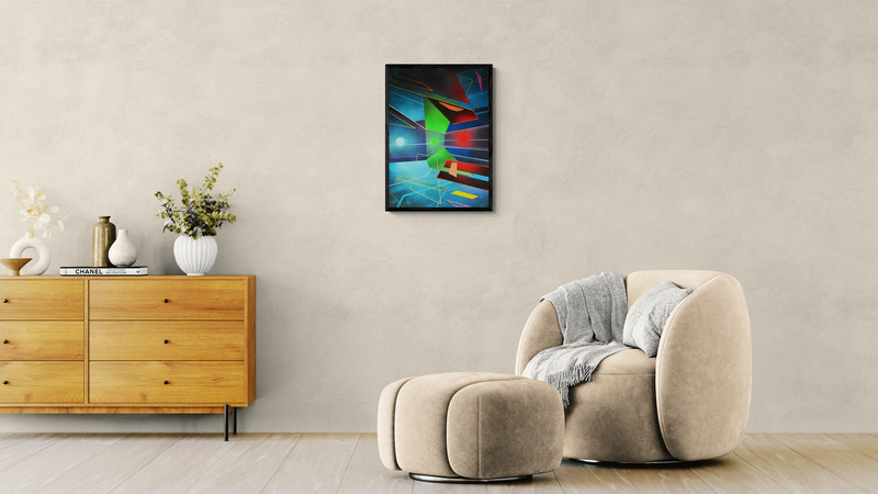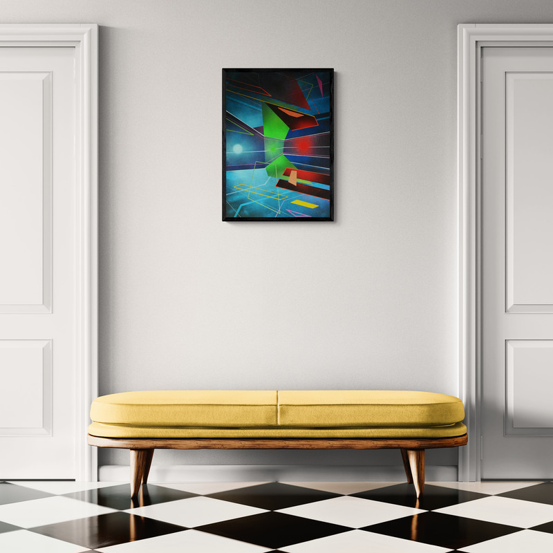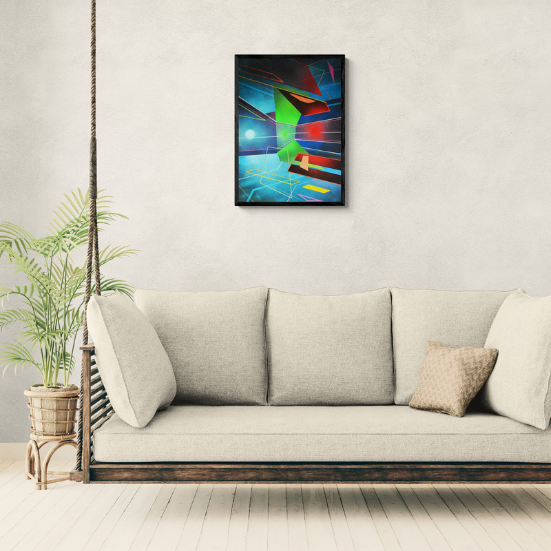 Abstrakt akrilfestmény HDF (faalap) lapon, elegáns, vékony alumínium kerettel, amelyet a keretező mester készített. A mű letisztult, modern megjelenést kap, tökéletes kortárs enteriőrökbe. 50 x 70 cm