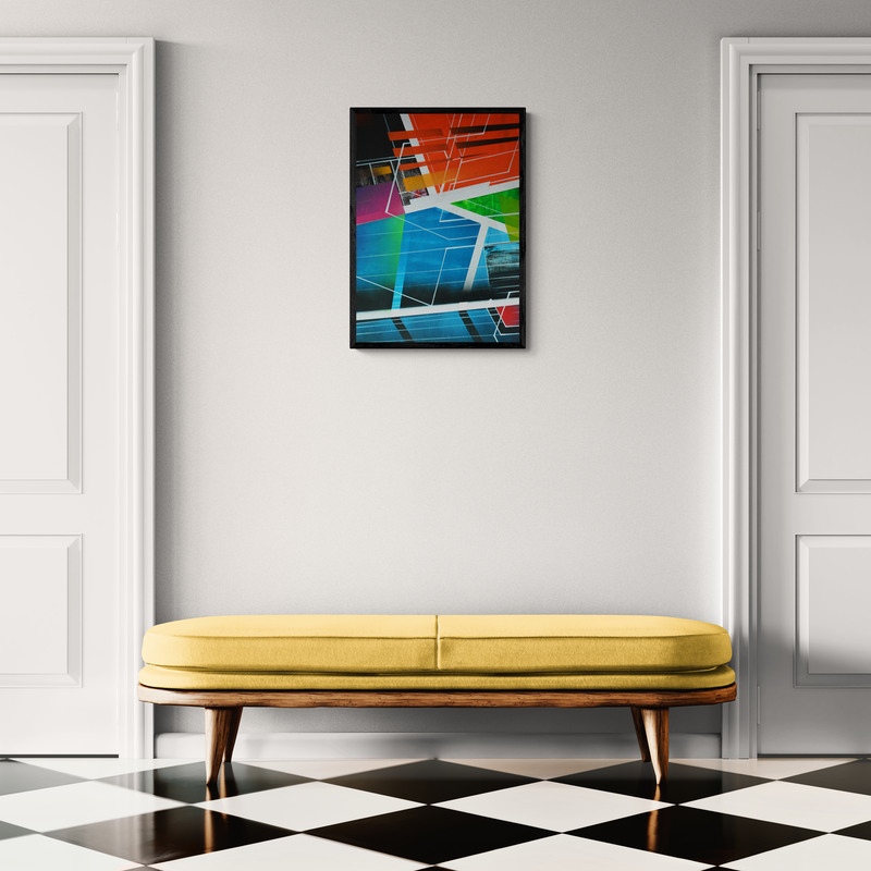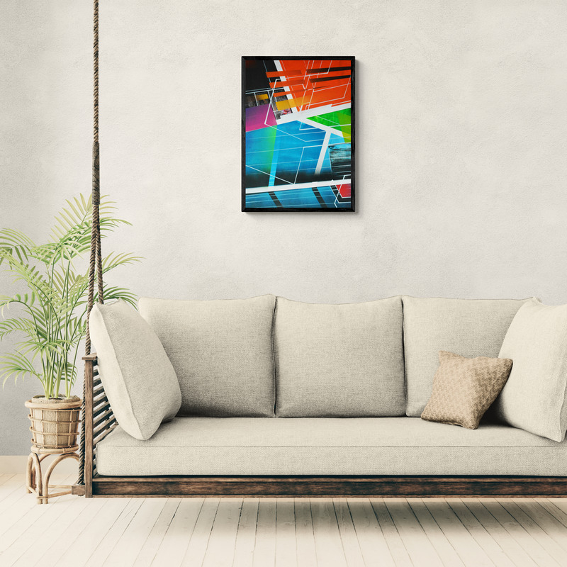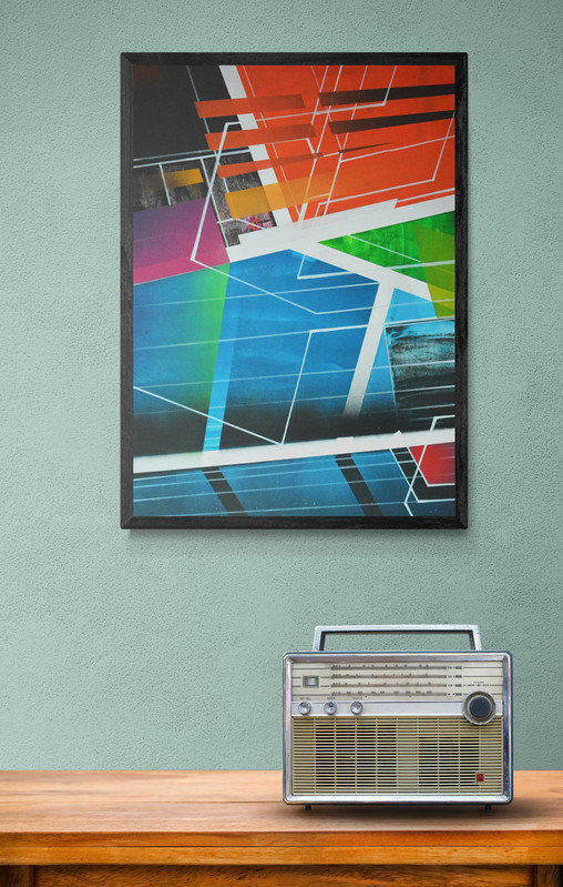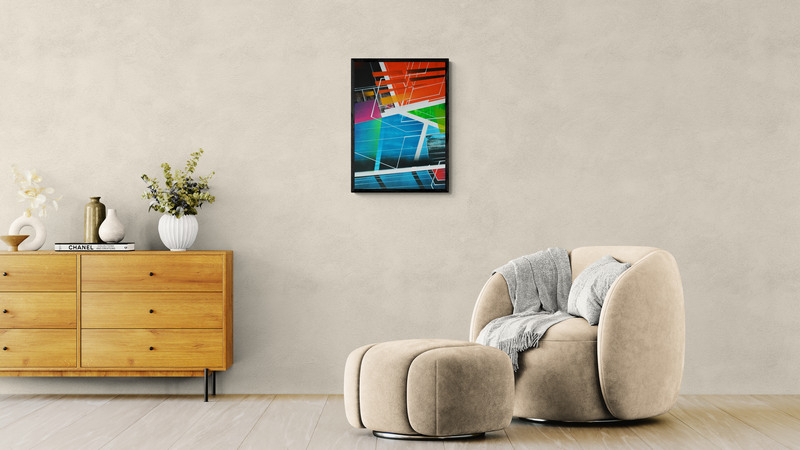 Abstrakt akrilfestmény HDF (faalap) lapon, elegáns, vékony alumínium kerettel, amelyet a keretező mester készített. A mű letisztult, modern megjelenést kap, tökéletes kortárs enteriőrökbe. 50 x 70 cm