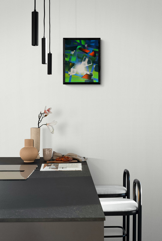 Abstract akrilfestmény HDF (faalap) lapon, elegáns, vékony alumínium kerettel, amelyet a keretező mester készített. A mű letisztult, modern megjelenést kap, tökéletes kortárs enteriőrökbe. 30 x 40 cm