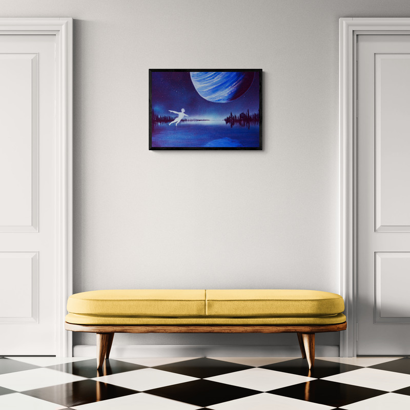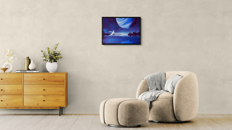 Akrilfestmény HDF (faalap) lapon, elegáns, vékony alumínium kerettel, amelyet a keretező mester készített. A mű letisztult, modern megjelenést kap, tökéletes kortárs enteriőrökbe. 70 x 50 cm