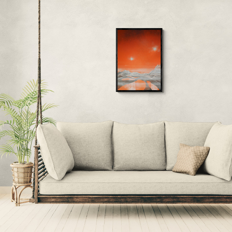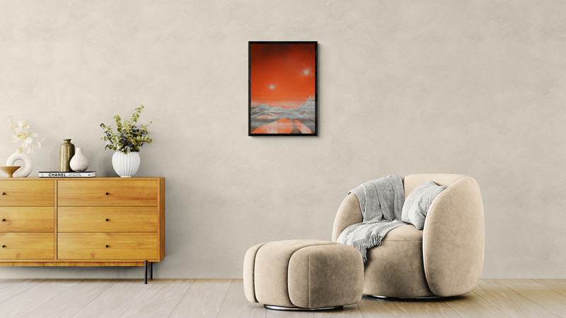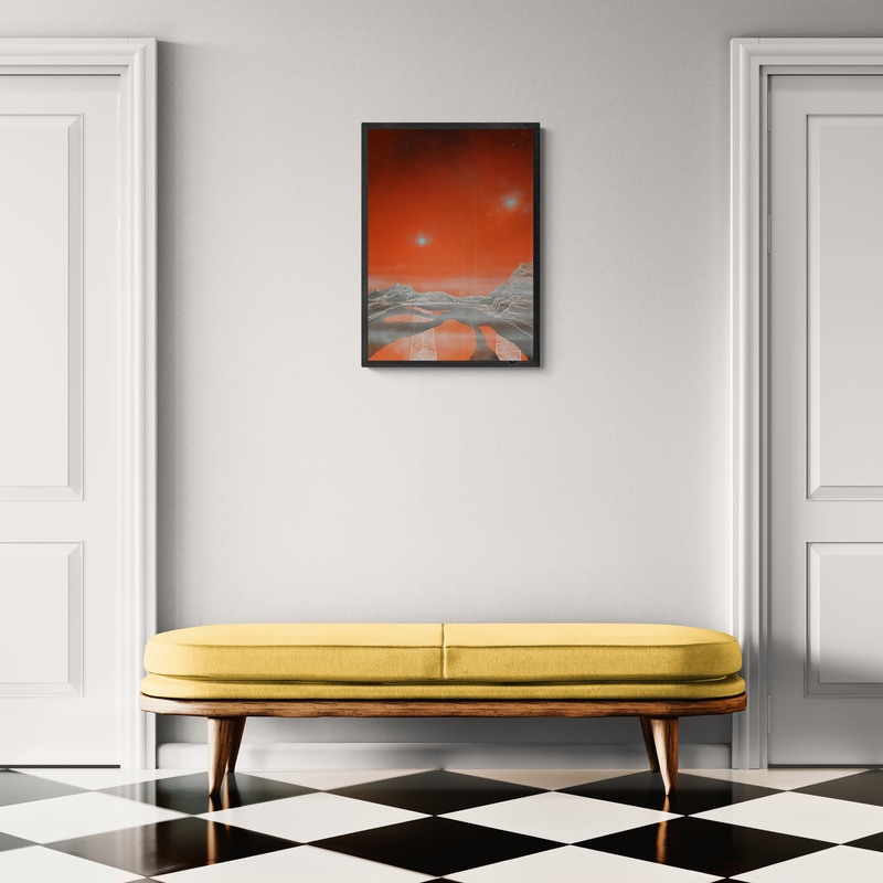 Akrilfestmény HDF (faalap) lapon, elegáns, vékony alumínium kerettel, amelyet a keretező mester készített. A mű letisztult, modern megjelenést kap, tökéletes kortárs enteriőrökbe. 50 x 70 cm